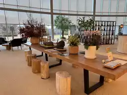 Based on the check-in desk, there is a breakfast restaurant on the left,