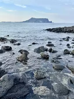 Descending, I explored the surrounding coastal area, where traditional Jeju haenyeo (female divers) showcased their deep-sea fishing skills. Watching them emerge from the water with their fresh catch was a fascinating glimpse into the island’s cultural heritage.