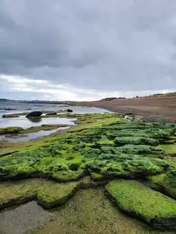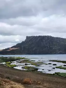 ▶️Gwangchigi Beach is a beautiful beach located near Seongsan Ilchulbong Peak in Jeju Island. It is characterized by a unique landscape where rocks and seaweed are combined, rather than a typical sandy beach. Especially during low tide, the sea water recedes and the green seaweed is revealed, creating a dreamy atmosphere. With Seongsan Ilchulbong Peak as the background, it is a perfect photo zone :) However, it can be slippery, so be careful not to fall, and if you go during sunrise or sunset on a nice day, you can enjoy an even more beautiful landscape! I highly recommend it to those who want to take emotional pictures.