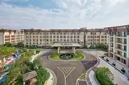 The Jeju Shinhwa World Marriott Resort, located in the beautiful Seogwipo city of Jeju Island, offers the perfect balance of luxury and nature. This hotel showcases a blend of modern concepts and traditional styles, creating a fresh and unique atmosphere. Meticulously crafted by a renowned design team, the hotel presents a distinctive vacation paradise. Its magnificent exterior and beautiful surroundings blend seamlessly with the scenic landscape, making it an ideal choice for relaxation and leisure.