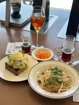 I ordered a brunch menu sandwich, hanchi oil pasta,