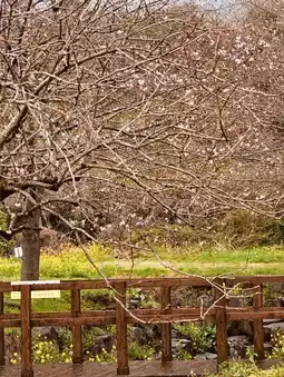 For a serene and less hurried cherry blossom experience in Jeju, Daewangsucheon Yerae Ecological Park is an excellent choice. The walking path alongside the stream offers beautiful views of the King Cherry blossoms, allowing for a peaceful contemplation of spring's arrival. It's a lovely spot to connect with nature and enjoy Jeju's distinctive floral display.
