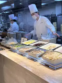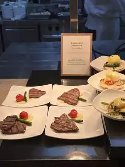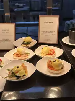 It is also famous for having the longest 110m infinity pool in Korea. The hotel breakfast was delicious, with signature dishes like lobster eggs benedict and steak, as well as Jeju specialties like grilled hairtail and omegi rice cake.