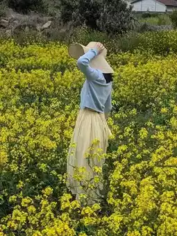 At the base of the mountain, there's a section that's a field of little golden canola flowers. The caretaker charges 2000kw (~2.00CAD) for visitors to walk through and take photos. Perhaps this spot isn't as well known, or perhaps we were lucky, because when we went the visitors were sparse and the flowers were thriving.