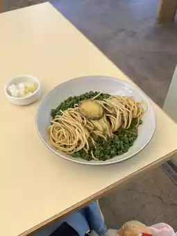 #Abalone Bracken Pasta It was unfamiliar, but it was so rich and delicious! It's oil pasta, so it can be greasy, but the green onions helped to balance out the greasyness, which was nice. I thought it would be better if two people went because there were so many sheep 🥹🥹 (I want to share the lasagna..)