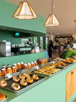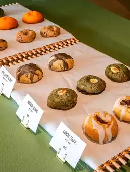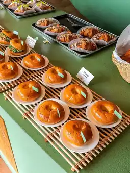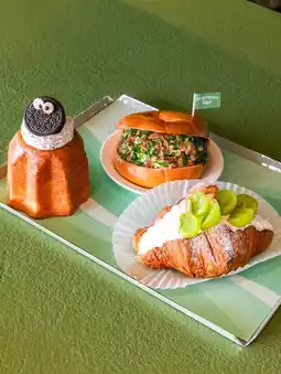 At Seogwipian Bakery, you can order croissants, baguettes, and cakes that reflect the unique flavors of Jeju. Next to the counter, there are bottled drinks and a kids' zone with beverages suitable for children. The menu includes drip coffee, which allows you to adjust the acidity and bitterness to your preference, as well as signature drinks like Seogwipinut, Cheongborian, and Coconut Coffee. Other options include Seogwipian Ade, Green Tangerine Ade, Strawberry Latte, Iced Tea, Hallabong Tea, Lavender Sage Tea, Mugwort Latte, Chocolate Latte, and Mushroom Soup.