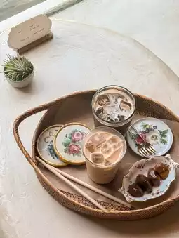Inside the cafe, you’ll find cozy wooden round tables designed for two people, as well as floor seating where you can take off your shoes and relax. There’s even a separate room for added privacy. Although the cafe isn’t particularly large, it’s still suitable for groups of three to four people.