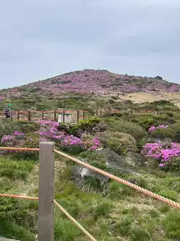 The arduous stone steps and endless When I was climbing the wooden stairs, I wanted to give up, but when I reached the top, an endless field of azalea flowers spread out.
