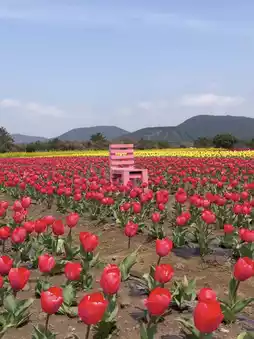Occasionally, a flower field train operates, offering a delightful way to enjoy the scenery.