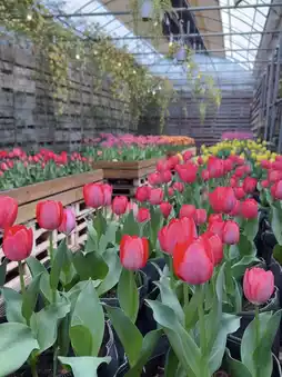 In addition to the outdoor flower fields, there are indoor greenhouses and a café.