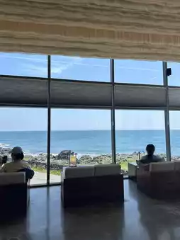 If you want to experience both the beauty of Jeju's ocean and its tranquil vibes, I highly recommend Cafe Aoao ๐โ. This charming cafe boasts a stunning view of the blue sea through its floor-to-ceiling glass windows, making it a true gem for scenic lovers.