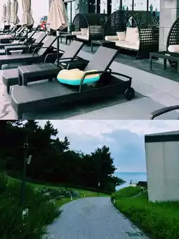 With a length of about 110m, it is the longest infinity pool in Korea and is naturally connected to the sea of Jeju.