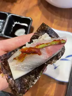 Located within a 10-minute walk from Dyne Oceano Hotel, it offers a stunning sea view. The owner is super friendly, and the mackerel sashimi is not fishy at all. The fish roe soup, packed with roe and milt, is absolutely amazing.
