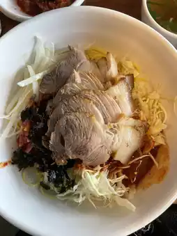 The noodles were chewy, and the pork was not fishy at all, making it incredibly delicious. Plus, the sea is right in front!