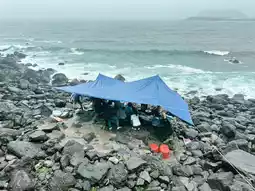 Regardless of the rainy weather ☔️, caution is always advised on the rocks. Visitors can also enjoy freshly caught seafood prepared by local haenyeo (female divers).