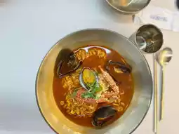 The abalone porridge includes fresh abalone, while the seafood ramen is flavorful with 🍤 shrimp, mussels, and 🦀 crab.