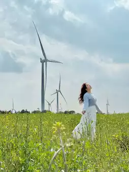 I took photos of windmills, rapeseed flowers and cherry blossoms at the same time.