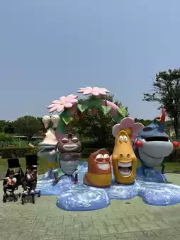 The characters in the park are cute and colorful
