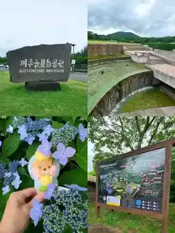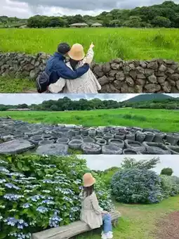 Jeju Island’s unique volcanic rock culture, natural scenery and mystery. The unique stone grandfather statue of Jeju Island is themed, and the tour guide introduced that each statue contains a unique history and legend. There are also many blue 💙🩵 embroidery flowers in full bloom 🥰