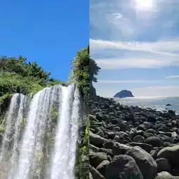Located not far from the center of Seogwipo City in Jeju Island, Cheonjiyeon Waterfall is a serene place that seems to have preserved the breath of nature as if time has stood still. Walking along the forest path, you can hear the gentle sound of the waterfall flowing softly between the trees, almost like the whisper of the wind, soothing your heart. Occasionally, you might even catch a glimpse of a rainbow, so it's definitely worth a visit.