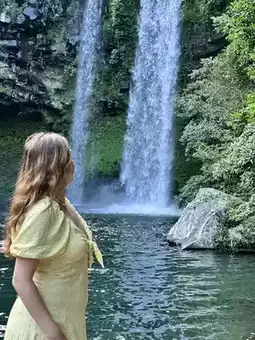 🌊 The waterfall drops 22 meters into a crystal-clear pond, creating misty, magical vibes. It’s even lit up at night—super romantic if you’re around in the evening.