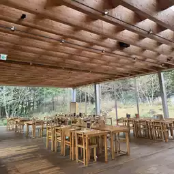At the cafe, you can enjoy organic brunch and sweets made with plenty of local ingredients, and the window offers a view of the lush tea fields.