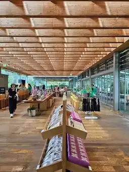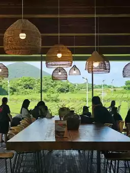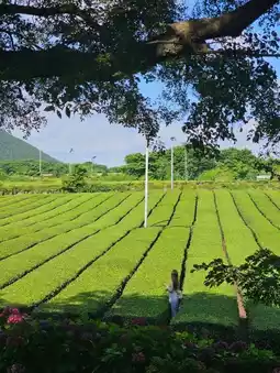 A vast green tea field spreads outside the premises, making it a popular spot for taking photos and strolling. There is also an observation area where you can see the mountain scenery over the tea fields.