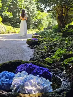 Summer (June to August): Hydrangeas and pink mules bloom, transforming the landscape into a cool, lush green space.