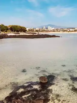 Pyoseon Beach is a captivating destination that beckons visitors to delve into its unique charm. The beach is renowned for its exceptionally fine sand, which, when combined with the gentle lapping of seawater, transforms into a soft, quicksand-like surface. This peculiar texture is surprisingly satisfying to walk on, offering a tactile experience that is both unusual and delightful. As you stroll along the shoreline, you’ll notice shellfish making occasional appearances in the tidal pools, adding a touch of natural wonder to the scene.
