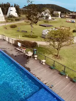 Daytime at Around Follie feels like stepping into a serene oasis. From the Airstream’s small front porch, you get expansive views with minimal distractions. One afternoon, I just lay outside soaking up the sun while sipping Jeju barley tea, occasionally dipping my feet in the outdoor pool—it’s small, peaceful, and surrounded by nature, adding to the calm. Inside, the soft lighting and clean aesthetic create the perfect chill-out vibe after a day of slow travel. It’s the kind of stay where your most luxurious moments come from the sky above, not the room inside. Tip: Download a nature app and bring headphones—the combination of tranquility and surroundings is unforgettable.