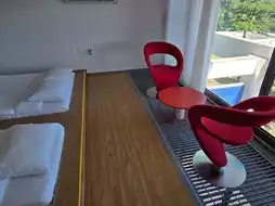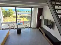 Day 2: Drive to #JejuStarlightResort for our overnight stay. It's very comfortable. Upon entering, there's a toilet and bathroom with a hallway in between. Further inside, there's a TV stand and cutlery, a sink, a large bed, and a wardrobe. The sunset can be seen around 7 p.m. Don't worry about missing it, as the room has a window facing the sky. Open the curtains and you can see it. Outside, there's a table for barbecues and swinging on the swings. The sky is directly above you—a truly wonderful experience.