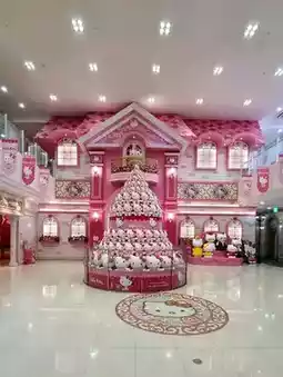 The rooftop garden features a maze and a view of the island. There's also a Hello Kitty-themed cafe indoors.