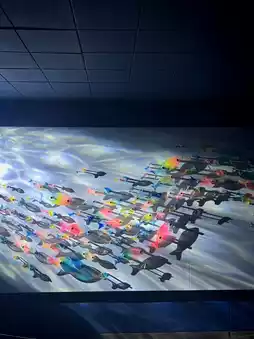 - The jellyfish area features a dramatic blue light wall, perfect for photo ops.