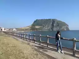 The coastal view is stunning, with the ocean breeze making it the perfect spot to just sit back and enjoy. You can take in the beauty of the volcanic crater from below without rushing, and it still feels like a unique Jeju experience.