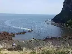 Seeing Seongsan Ilchulbong Peak was the highlight of our group tour. It is a UNESCO World Heritage site. There are two paths - one you pay to walk to the top of the creator the other is along he ocean where there is a place to watch the women free diving for seafood.