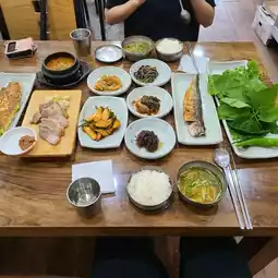 Bomalgwapunggyeong, located in Hamori, Moseulpo, is a local restaurant that has been improving its recipes and space as part of Hotel Shilla's "Making Delicious Jeju" project. I ordered a set meal for two this time, and the generous portions were incredibly satisfying. The dome meat was tender, juicy, and lightly flavored, while the grilled fish, with its subtle smoky aroma, paired perfectly with rice. The warm omelet and soybean paste stew were lightly seasoned and savory, perfect for mixing with rice. The side dishes were also neatly arranged, creating a homey, comforting experience. The food selection and flavors are excellent for the price, making this a restaurant that will satisfy both locals and travelers.