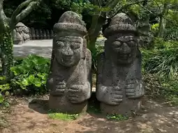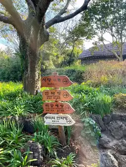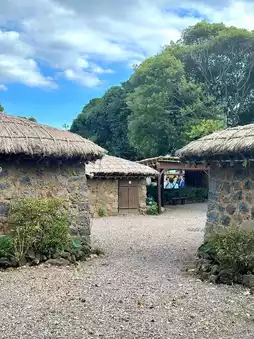 The houses in Jeju Folk Village are a fascinating reflection of the island’s culture and environment. Built with black volcanic stones and thatched roofs, these traditional homes were designed to withstand Jeju’s strong winds and changing weather. The stone walls, often called ollae, not only protected families but also gave the village its distinctive charm. Roofs were made from layers of straw, tied tightly to keep them secure during storms, while the low entrances helped guard against harsh winds. Inside, the layout was simple yet practical, with living spaces arranged around daily needs like cooking and farming. Walking among these houses today feels like stepping into history, where every detail shows the resilience and creativity of Jeju’s people.