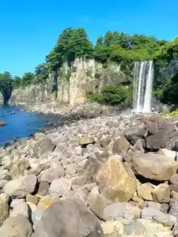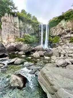 Jeongbang Waterfall in Jeju Island is a breathtaking sight where fresh water meets the ocean in a rare natural wonder. Unlike most waterfalls that flow into rivers, this one cascades dramatically over cliffs straight into the sea, creating a mesmerizing scene. The sound of rushing water, the sea breeze, and the mist in the air make the place feel refreshing and alive. Visitors often enjoy walking along the rocky shore, taking photos, or simply pausing to soak in the beauty. Jeongbang is not just a waterfall—it’s an experience where the power of nature and the calm of the sea come together.