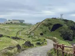 Walking along the path next to the calm sea, you can catch a glimpse of the lighthouse and Seongsan Ilchulbong Peak in the distance. The slight breeze was so refreshing. 🍃 The gentle slope made for an easy walk, and the occasional horse sighting made the trip even more romantic. 🐴 It's Jeju's signature healing course, perfect for a leisurely stroll overlooking the ocean!