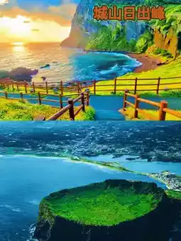 Second Stop: Seongsan Ilchulbong 🌅, a volcanic cone 🌋 that erupted from the sea, with 99 jagged rocks surrounding its crater. You can hike up to overlook the sea, and it's also a filming location for 'My Name Is Kim Sam-soon'.