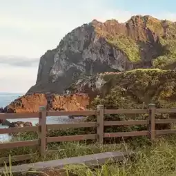 Seongsan Ilchulbong’s location offers some of the best panoramic views on Jeju. From the peak, you are treated to a magnificent 360-degree vista that includes the entire East Jeju coastline, the nearby Udo Island floating in the sea, and the surrounding verdant farmlands. This strategic position makes it a required stop for photographers and sightseers, offering endless opportunities to capture the unique blend of volcanic terrain and ocean scenery.