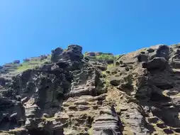 Walking along the narrow trail on the wave-cut platform offers one of the most unique coastal experiences on Jeju. The layered sandstone, formed from ancient volcanic debris and shaped by wind and sea, reveals geological history in vivid relief.  Around the rocks you may spot wild mussels clinging on, small sea caves hidden in the cliffs, and the scattering of Haenyeo (women divers) selling fresh seafood — adding local life to the natural drama.