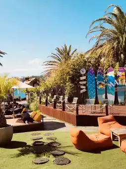 This blend of high-energy design with powerful nature is what defines the environment. From the comfortable outdoor seating areas, which are clearly inspired by places like Malibu or Ibiza, you gaze out upon the crashing waves below the precipice, witnessing the sheer, natural drop of the land. The meticulous, sun-drenched style serves to enhance the already spectacular, wild coastal scenery, turning the raw beauty of Namjeju into a sophisticated, visually arresting postcard.