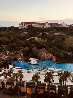 The evening experience at He:on (해온), the outdoor pool at Lotte Hotel Jeju (롯데호텔 제주), is truly the pinnacle of relaxation. The combination of the warm, therapeutic jacuzzi waters and the soft lighting against the resort architecture creates an atmosphere of profound serenity and luxury.