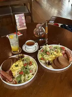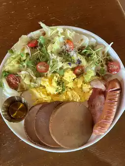 It has 3 pancakes and various vegetables and scrambled eggs, etc., so you can eat your fill