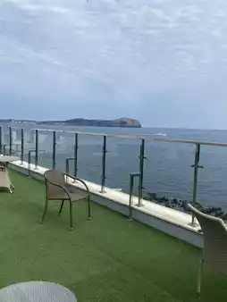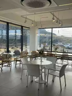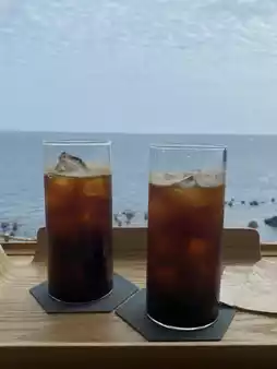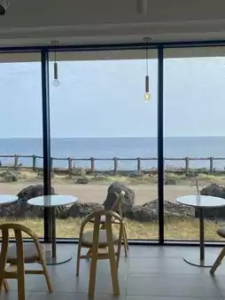 The exterior of the cafe immediately caught my eye. The view of the ocean was stunning, and even inside, the scenery was breathtaking—it felt like a true haven for beautiful landscapes.