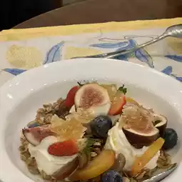 The main menu is greek yogurt, granola bowl. Recommended for health lovers.