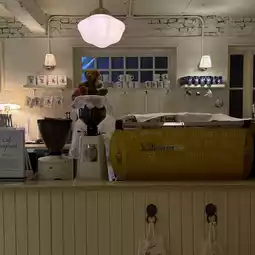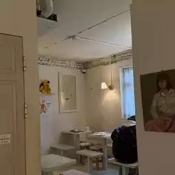 The shop is a red brick building with white doors and windows. The shop has 2 floors. You can sit alone, in a group, or work. Koreans like to come and chat here a lot.