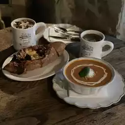 I had a hard French bread topped with tomatoes, eggplant, and plenty of cheese, and tomato soup! The bread was crispy on the outside and chewy on the inside! 😳! The soup was so delicious I can confidently say it was the best soup I've ever had! The rich tomato-based soup had a slightly spicy kick that was characteristic of Korean cuisine, making it addictive. 🍽️