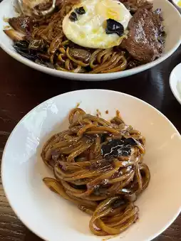 Have you tried truffle jjajangmyeon with steak, fried egg, and truffle on top of jjajangmyeon?✨